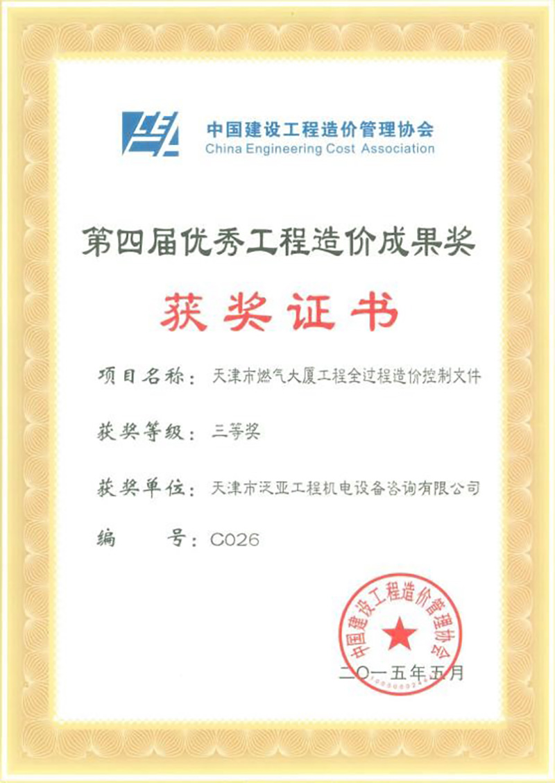 2015第四屆優(yōu)秀工程造價(jià)成果獎(jiǎng)
