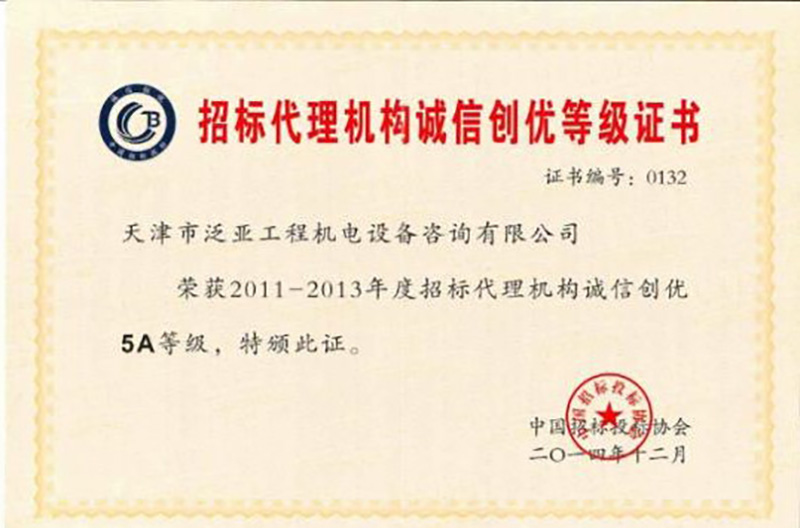 2011-2013年度招標(biāo)代理誠(chéng)信創(chuàng)優(yōu)5A級(jí)企業(yè)