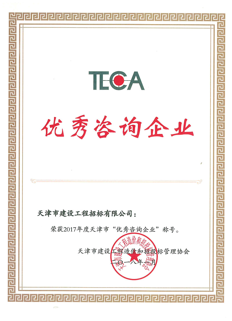2017年度天津市優(yōu)秀咨詢企業(yè)