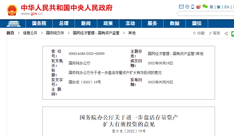 國務(wù)院辦公廳關(guān)于進(jìn)一步盤活存量資產(chǎn)擴(kuò)大有效投資的意見