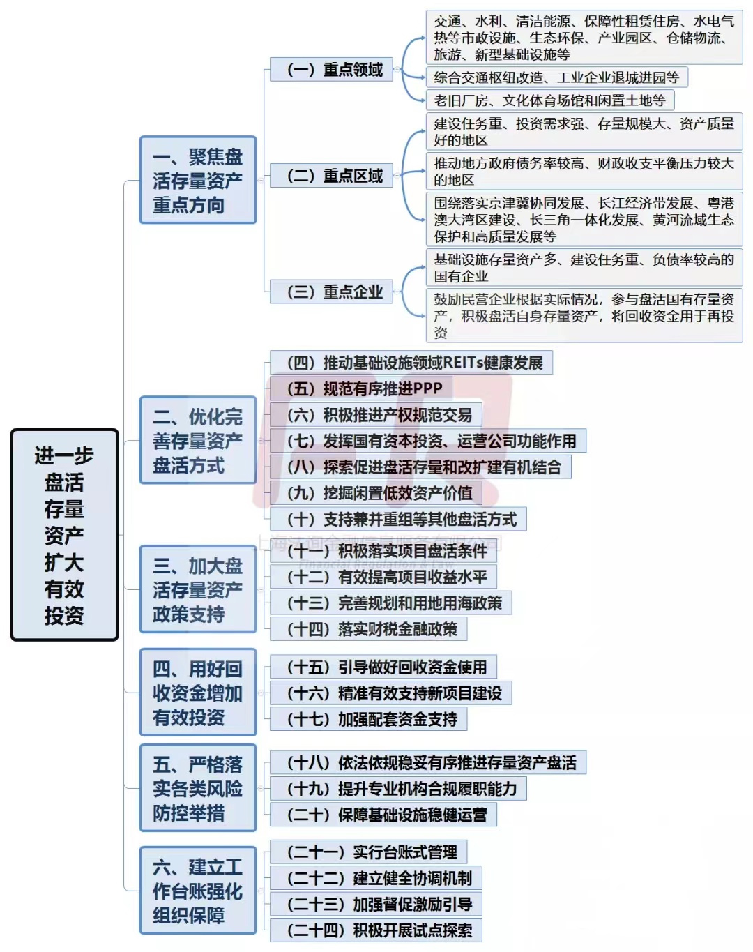 剛剛,國務(wù)院辦公廳發(fā)布《關(guān)于進(jìn)一步盤活存量資產(chǎn)擴(kuò)大有效投資的意見》(國辦發(fā)〔2022〕19號)。新規(guī)共提出24條意見,整體框架如下: